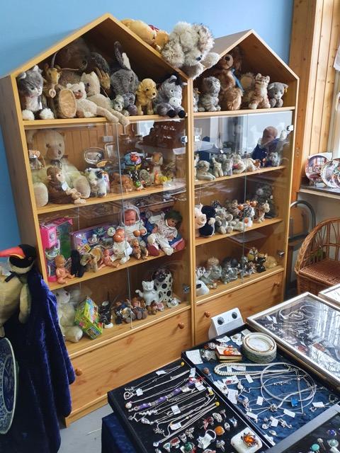 reiche Auswahl an Antikem und Ausgefallenem, z.B. Steiff-Tiere, edle Porzellane